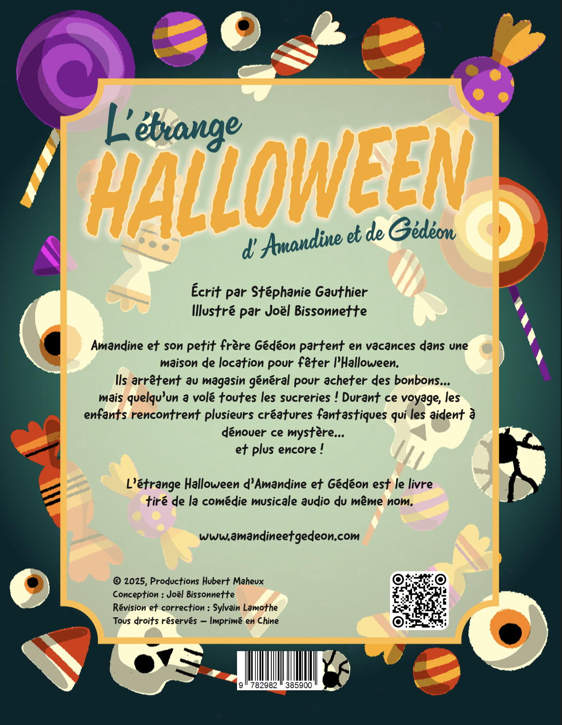 Le livre d’Halloween format de poche d’Amandine et de Gédéon, c’est quoi? Des illustrations qui vous donneront l’eau à la bouche! Votre histoire sucrée préférée à tenir entre vos doigts collants de bonbons!
